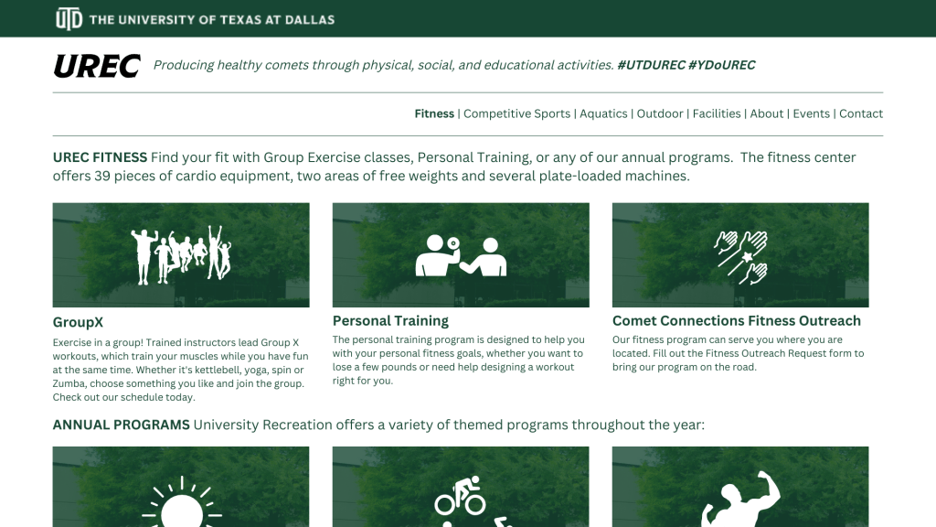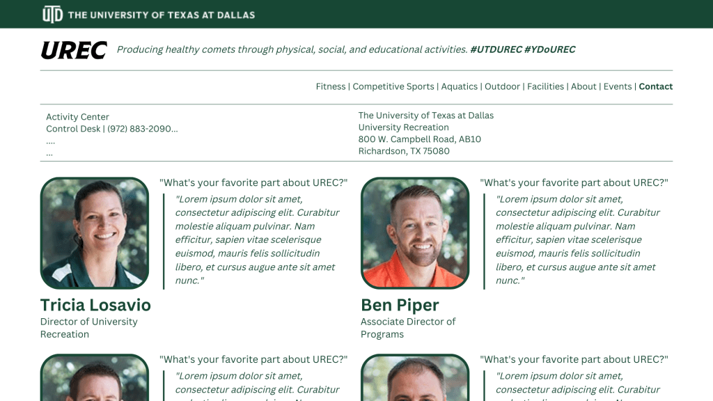 University Recreation Landing Website